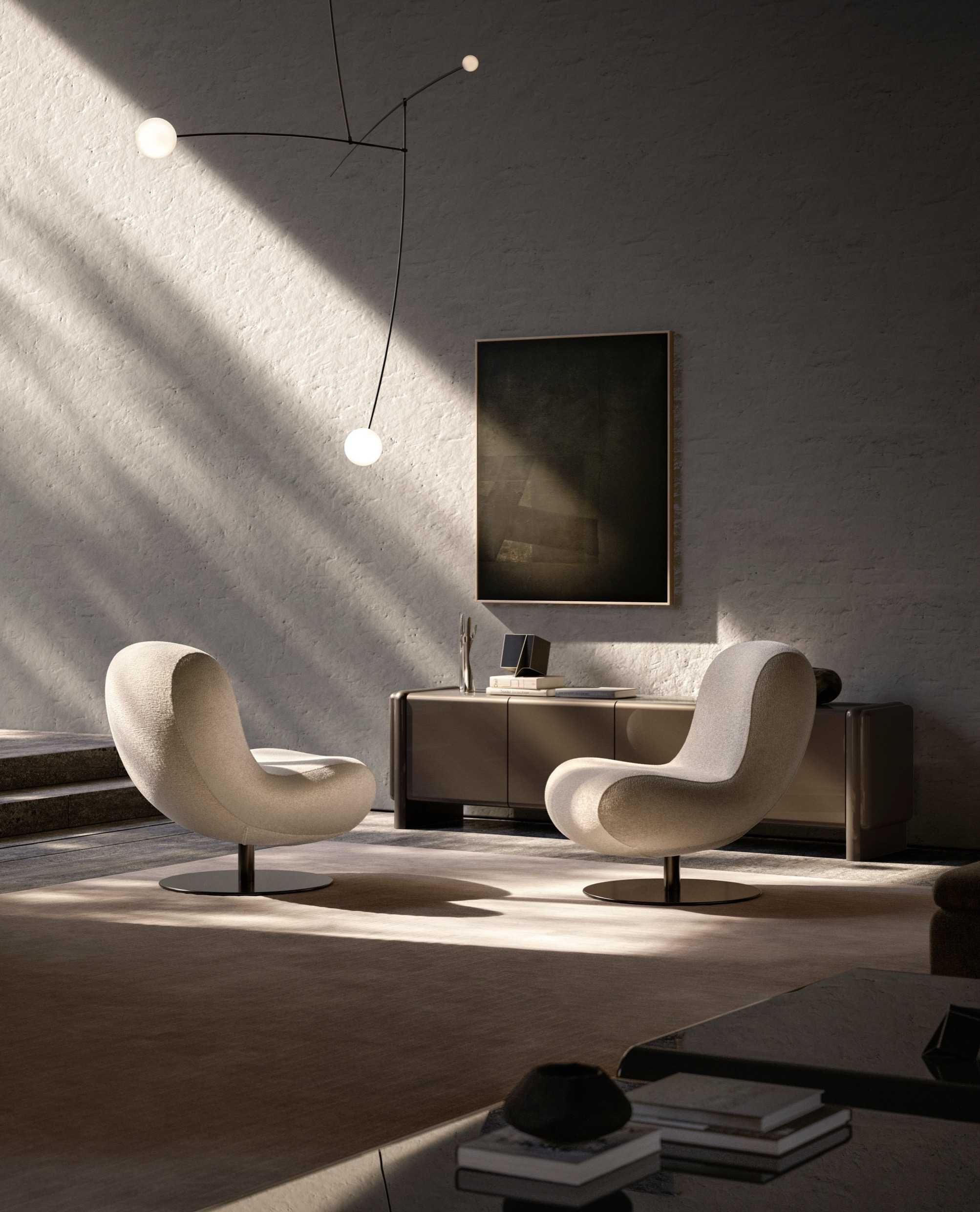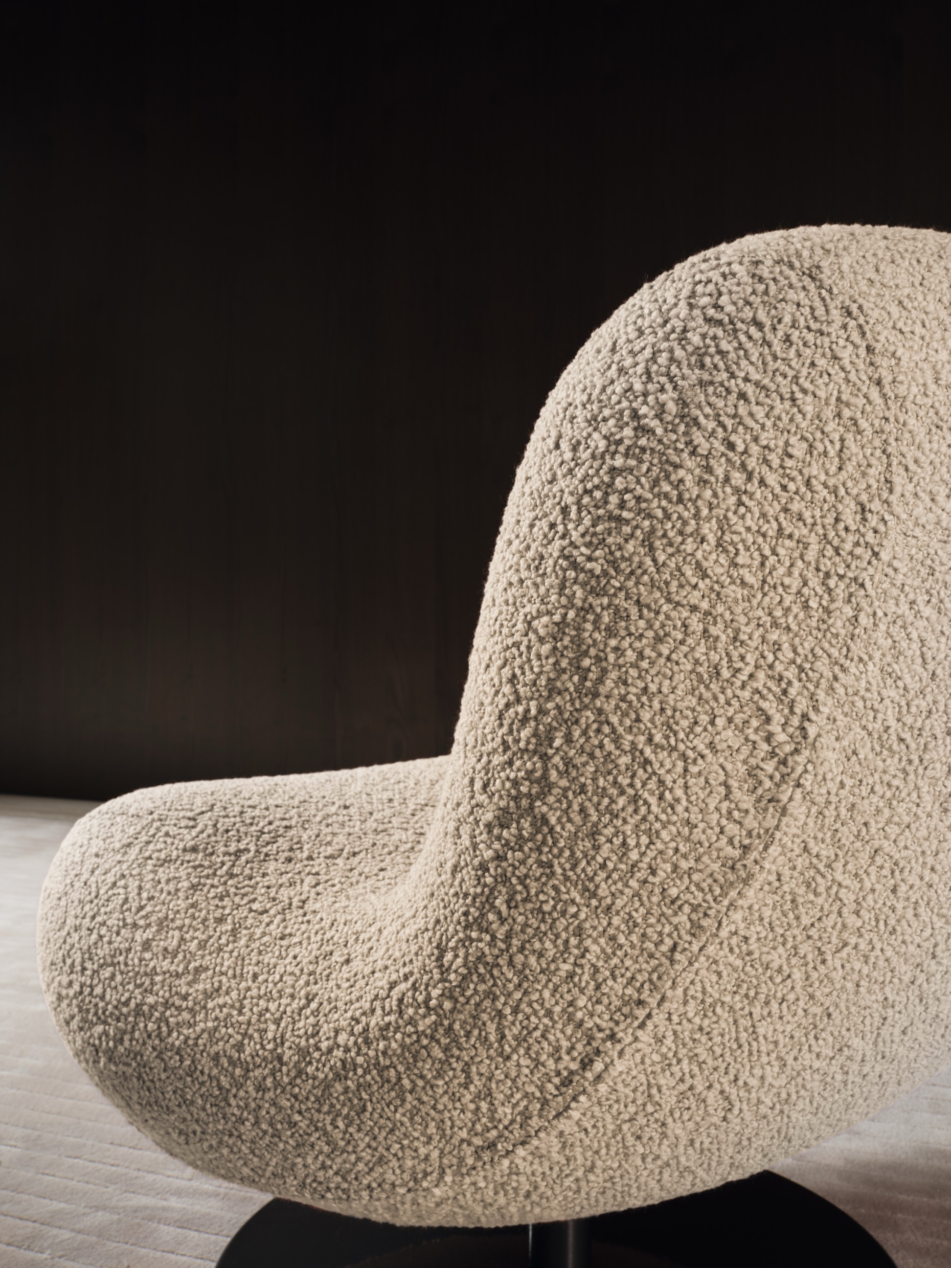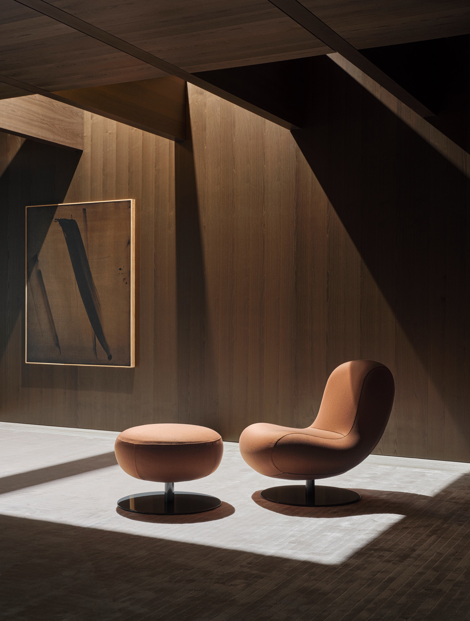 El sillón Bosco de Naoto Fukasawa invita al cuerpo a relajarse. Inspirado en las ondulantes colinas de la Toscana, su suave silueta y sus contornos sutilmente diferenciados evocan los ritmos del paisaje. Su forma se caracteriza por unos volúmenes generosos que acogen el cuerpo con naturalidad, invitando a quien se sienta a dejarse envolver por el sillón. El diseño apuesta por la continuidad, dando lugar a una silueta compacta que transmite estabilidad, protección y tranquilidad en el espacio.