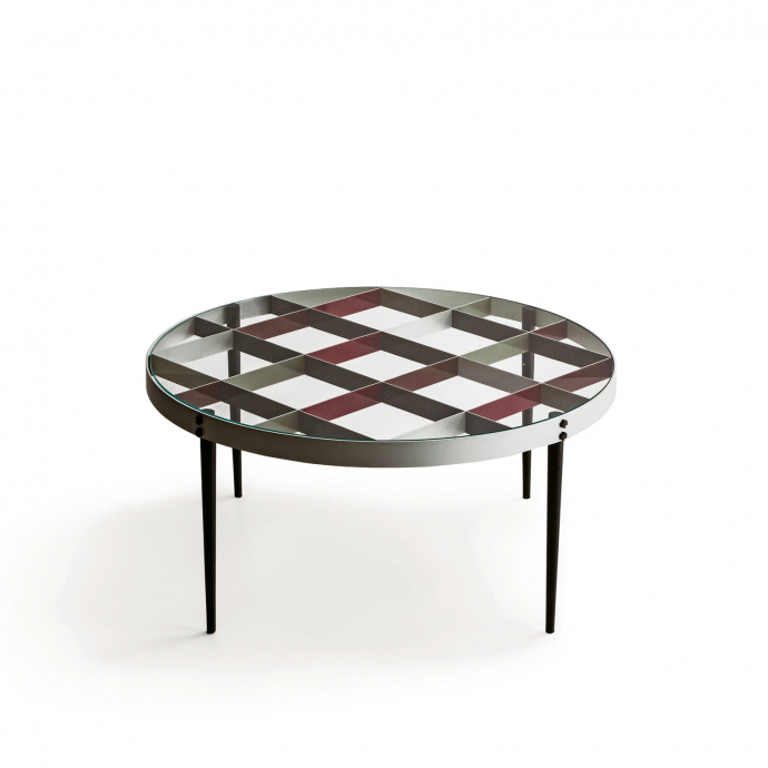 La mesita D.555.1, diseñada en 1954-1955 para la vivienda del autor en via Dezza en Milán, está realizada por Molteni&C sobre la base de los dibujos originales que se guardan en los Gio Ponti Archives. Completa la Gio Ponti Collection, una serie de muebles diseñados por el arquitecto entre 1935 y los años Cincuenta. Estructura y patas metálicas, con parrilla coloreada pintada a mano, el sobre es de cristal transparente.
