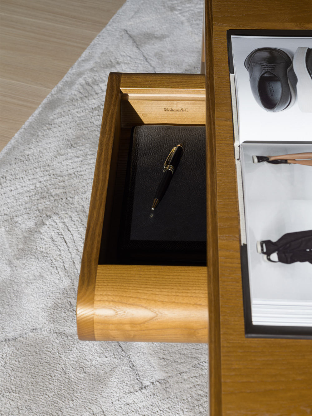 Como para todos los proyectos de la colección Heritage, el estudio atento de dibujos, fotos y material de la época ha permitido reproducir fielmente el escritorio D.847.1 en todos sus detalles, sacando a la luz una obra maestra olvidada, marcada por una elevada maestría artesanal en la elaboración de la madera.