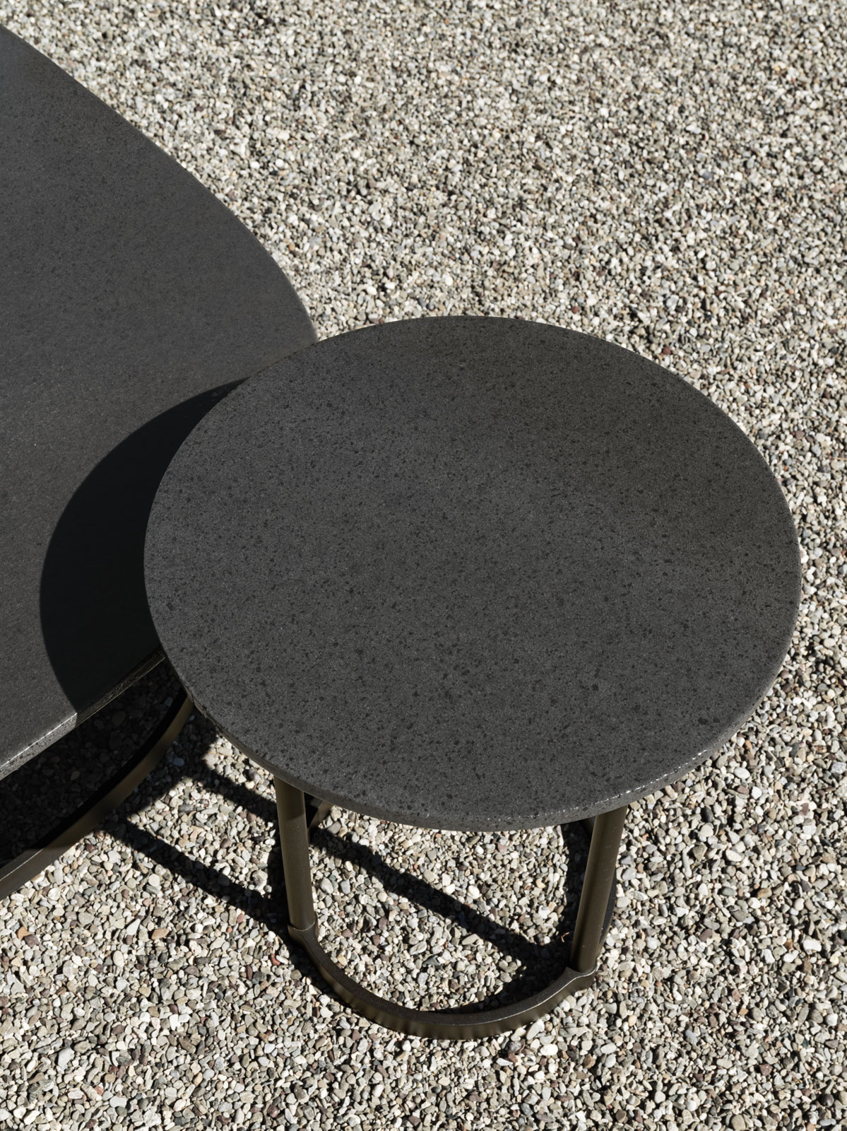 Pour souligner les correspondances formelles et matérielles entre les deux Collections, Vincent Van Duysen a conçu les tables basses Regent avec des plateaux de trois formes : ronde, ovale et carrée. La taille des plateaux est inversement proportionnelle à la hauteur des tables basses, ce qui leur permet de s'emboîter les unes dans les autres, créant ainsi des îlots d'éléments côte à côte. Le modèle rond est également conçu pour être placé au-dessus des canapés des deux collections, offrant ainsi une tablette très utile.