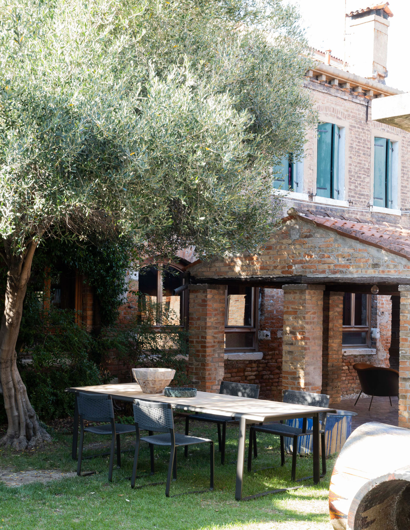 The Orsoni Venezia courtyard served as the backdrop for the Molteni&C's Outdoor Collection. Here, the elegance of the Palinfrasca sofa, Regent, and Aster small tables danced in perfect harmony with the outdoor ambience that features the heart of the furnace itself: the 'crogiolo,' which melds glass and color at high temperatures to create Venetian glass enamels.