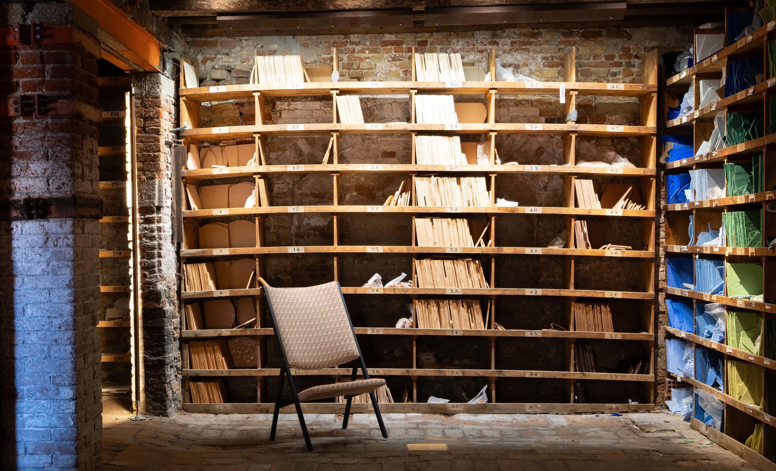 Displaying more than 3,500 tones and shades, the Orsoni Color Library is where the Venetian smalti, or the handmade ceramic tiles used in mosaic, are carefully kept and cataloged by nuance. A living archive of an outstanding artistic heritage, the library offers an immediate encounter with the endless possibilities innate to the art of mosaic.