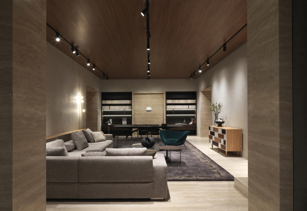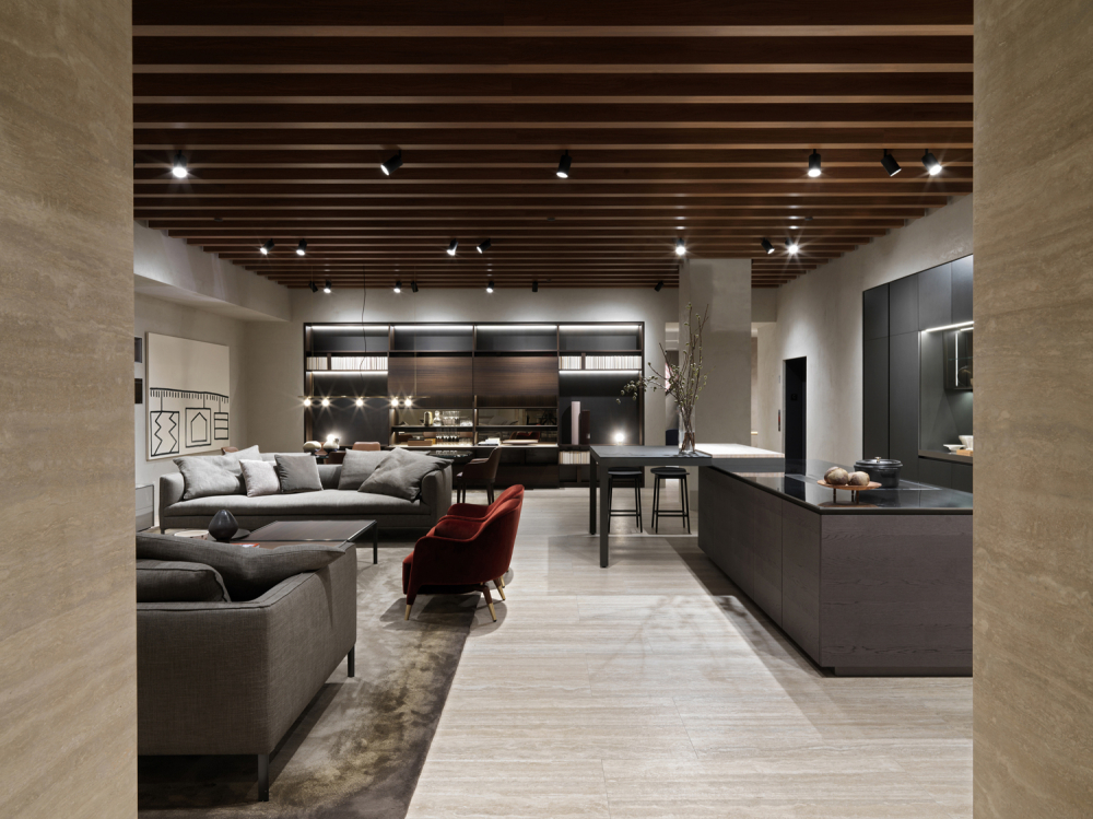 The space encloses the very latest offering of the Group’s three brands: Molteni&C, Dada and UniFor and symbolizes a life marked by Italian flair, ranging from the intimacy of a private home right through to the contemporary settings of the office world.