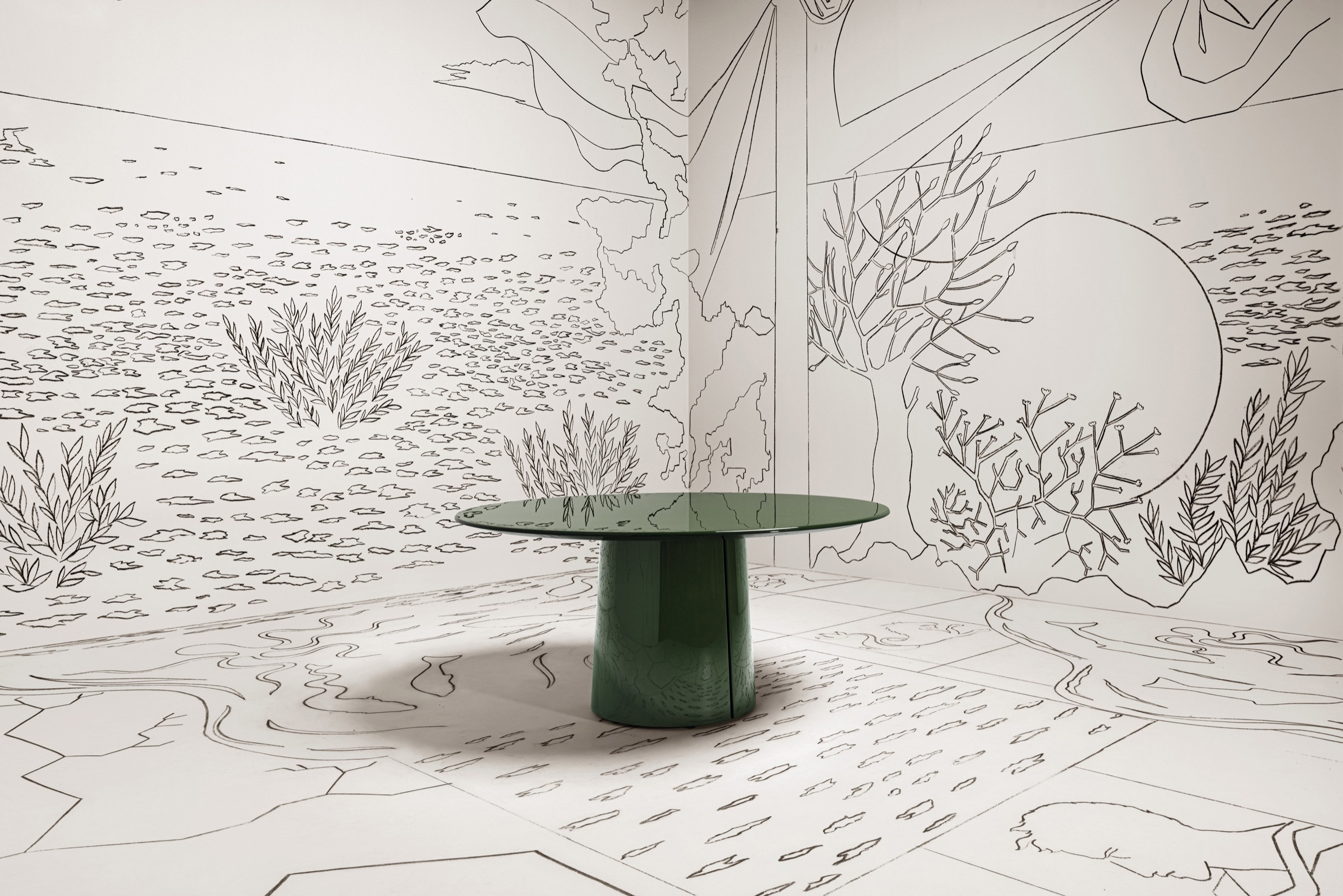 I richiami classici alla Domus romana si ritrovano anche nella collaborazione artistica con Roberto Ruspoli, che ha interpretato gli archetipi della Collezione. L’opera “Il Sogno di Virgilio” realizzata in esclusiva per Molteni&C e che fa da sfondo ai nuovi prodotti della Collezione 2023, rappresenta la stanza immaginaria del giovane poeta Virgilio, dove si formano le sue prime visioni poetiche. Un ambiente dove dagli intonaci cadenti e dalle crepe murarie riemerge la natura che entra con i suoi elementi, attraversando letteralmente il peristilio. Un capriccioso Zefiro si diverte a fondere il tutto.