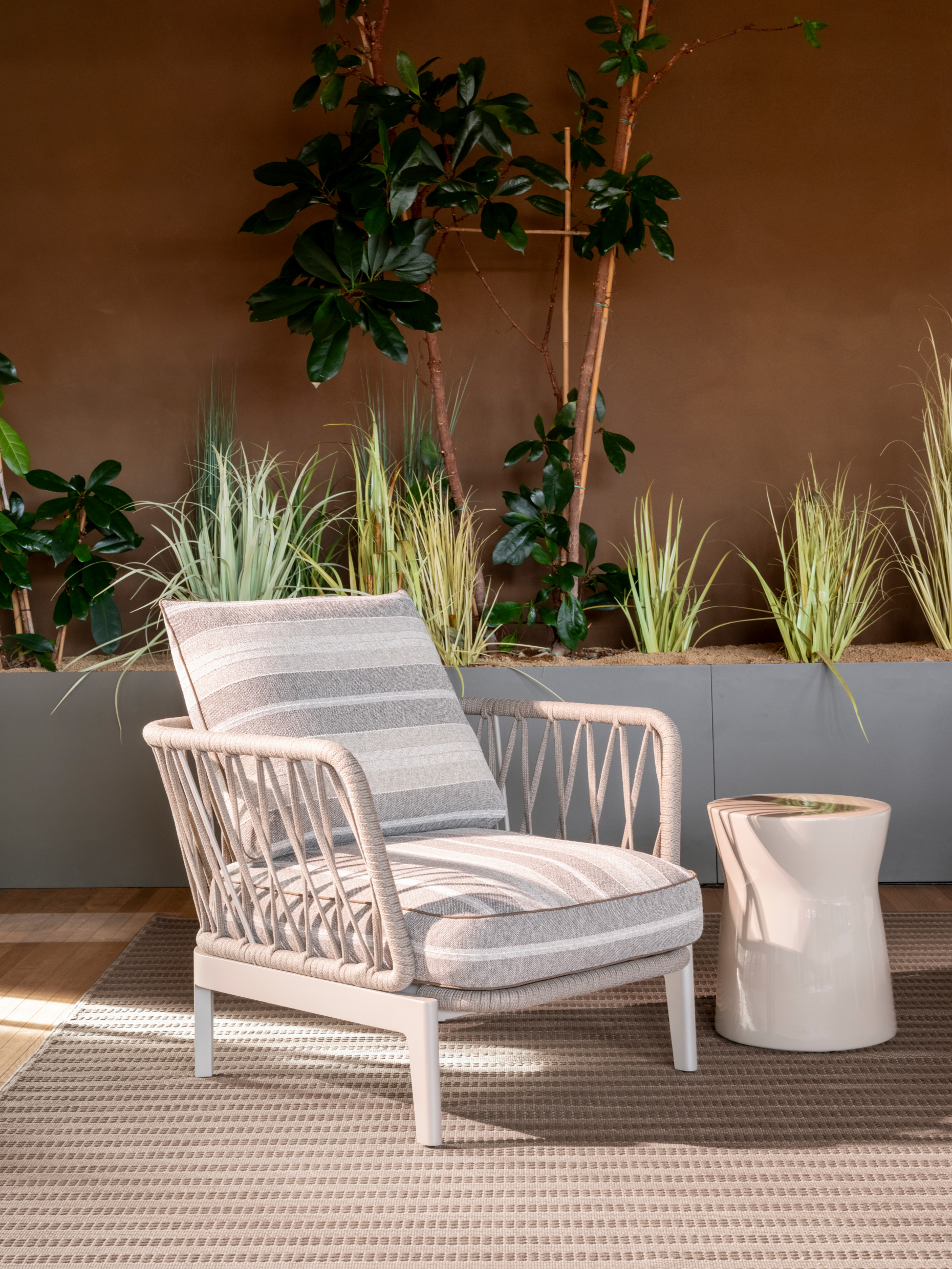 La poltrona Chelsea Outdoor di Studio Dordoni reinterpreta il carattere del progetto indoor originale di Rodolfo Dordoni in una forma compatta ed espressiva, dove cura dei dettagli, comfort e rigore formale si fondono con naturalezza.