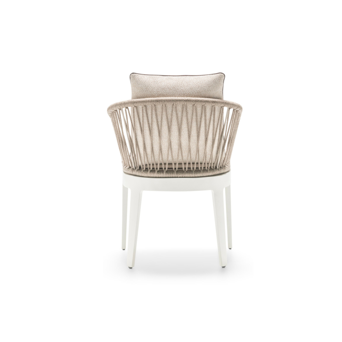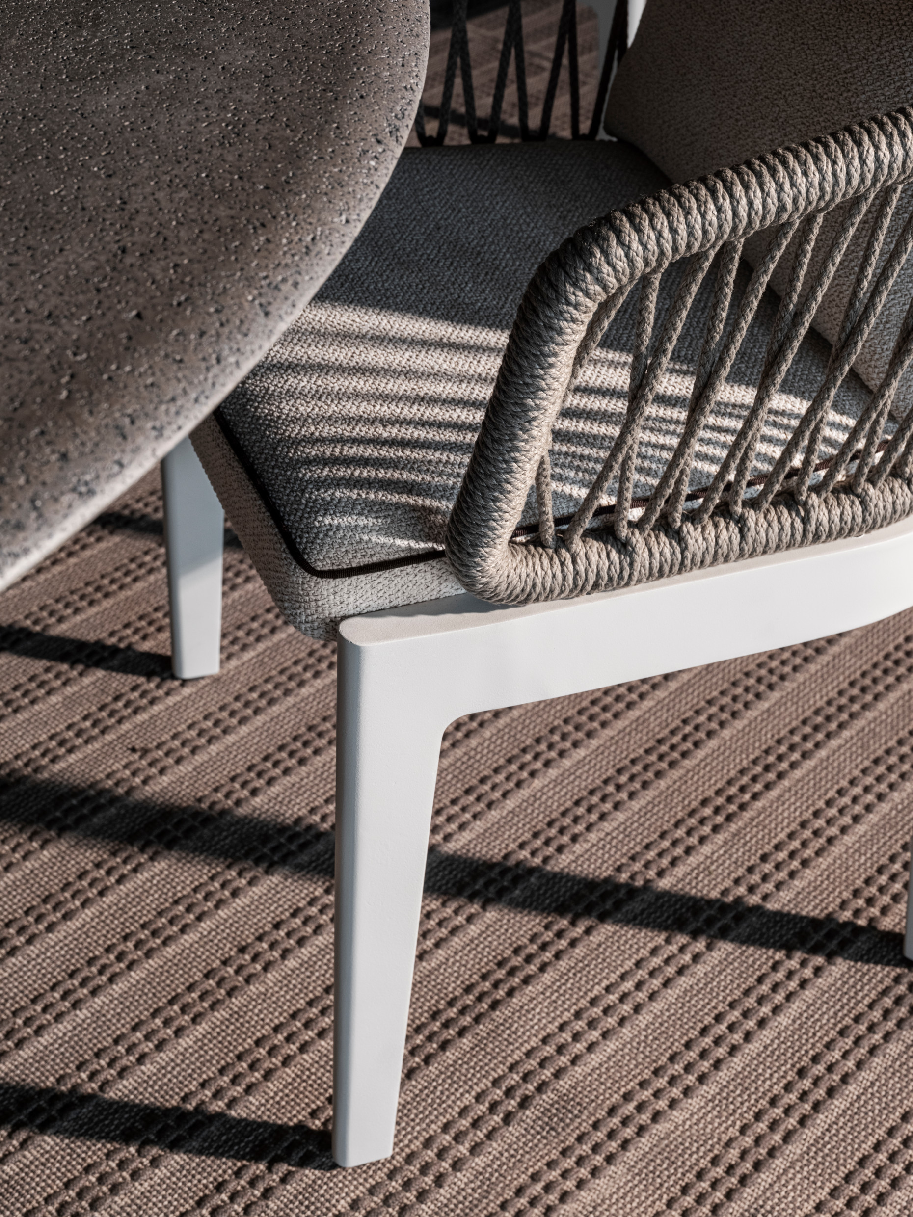 La sedia Chelsea Outdoor di Studio Dordoni interpreta e sintetizza l’identità del progetto originale di Rodolfo Dordoni, ripensandola per essere vissuta con naturalezza negli spazi outdoor. La sua distintiva base in alluminio verniciato a polvere definisce una struttura leggera ma resistente, capace di affrontare le condizioni esterne mantenendo un profilo elegante e contemporaneo. Le proporzioni equilibrate e la geometria discreta della sedia esprimono un’eleganza sobria che si armonizza con naturalezza in una varietà di ambienti outdoor.