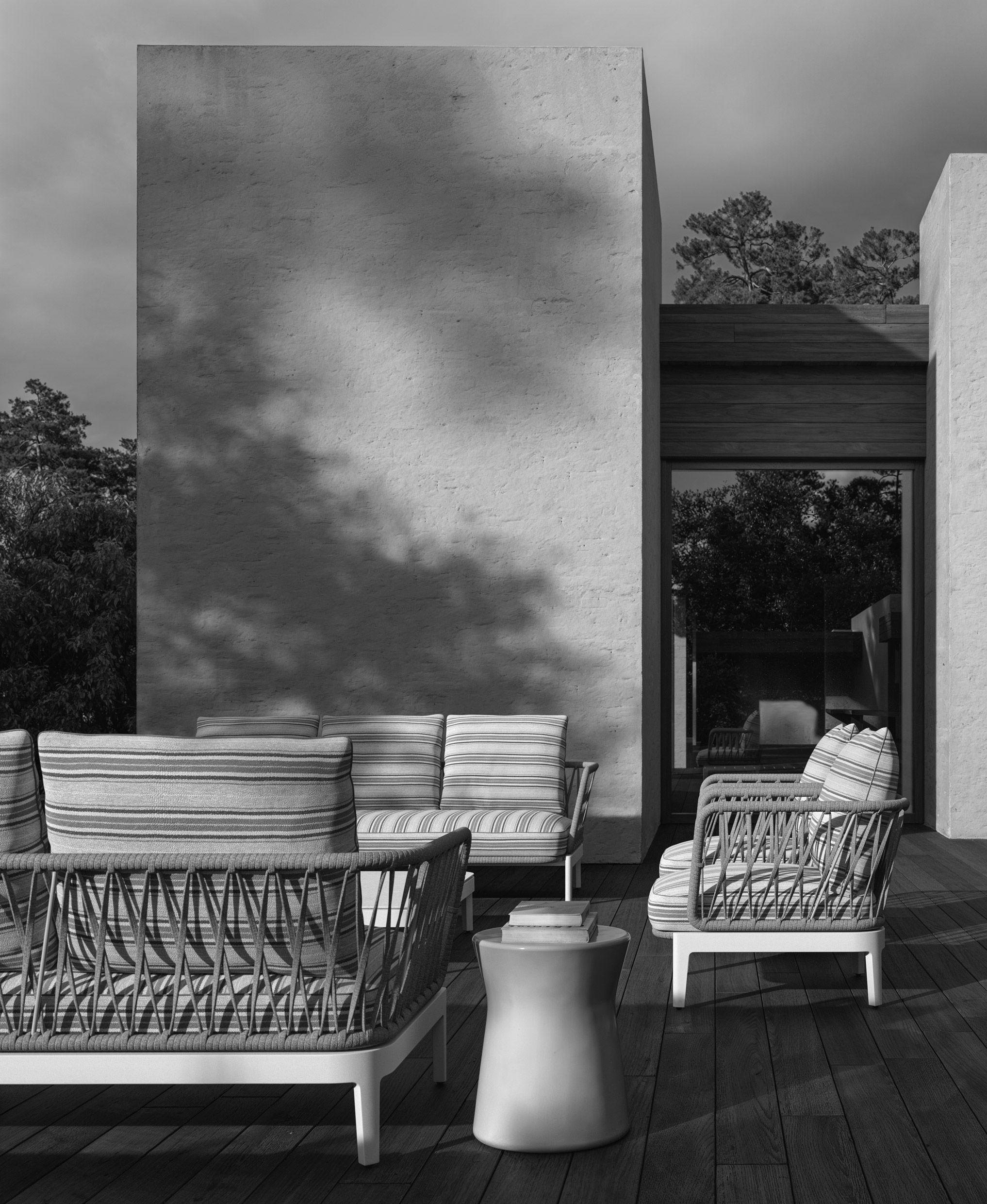 La collezione Chelsea Outdoor porta negli spazi esterni le linee sobrie ed eleganti caratteristiche dei prodotti indoor, arricchendole con un raffinato intreccio. I pezzi sono stati attentamente reinterpretati con nuovi materiali eleganti e durevoli, mantenendo al contempo gli elementi di design originali, per sottolineare la continuità tra interni ed esterni.