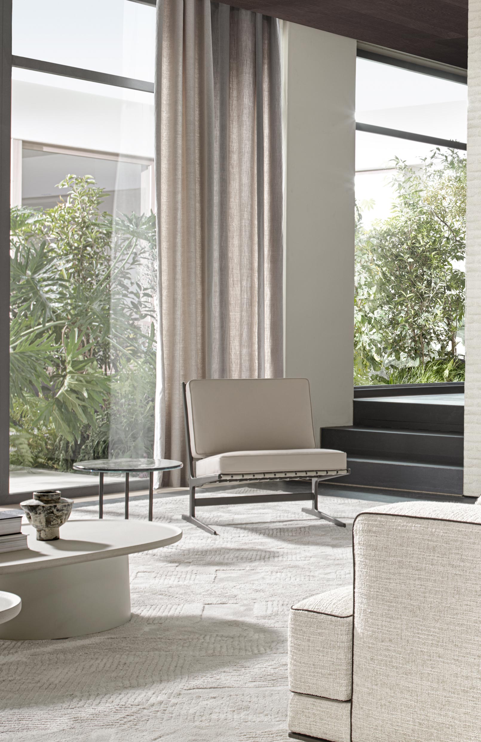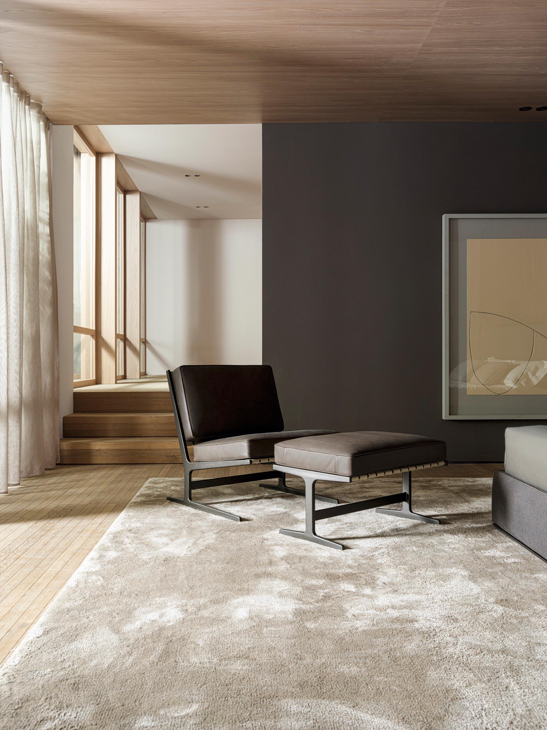 “Per questa nuova poltrona, ci siamo ispirati a mobili modernisti come la poltrona Barcelona di Mies Van Der Rohe, un contributo all'Arte del Vivere che trova origine negli ultimi lavori che abbiamo sviluppato con Molteni&C. Abbiamo prestato attenzione ai dettagli e alle proporzioni: la trasposizione di una silhouette decisa interpretata dalla leggerezza della struttura metallica e un ingegnoso sistema di cinghie in cuoio che ne definisce seduta e schienale e contiene i cuscini”