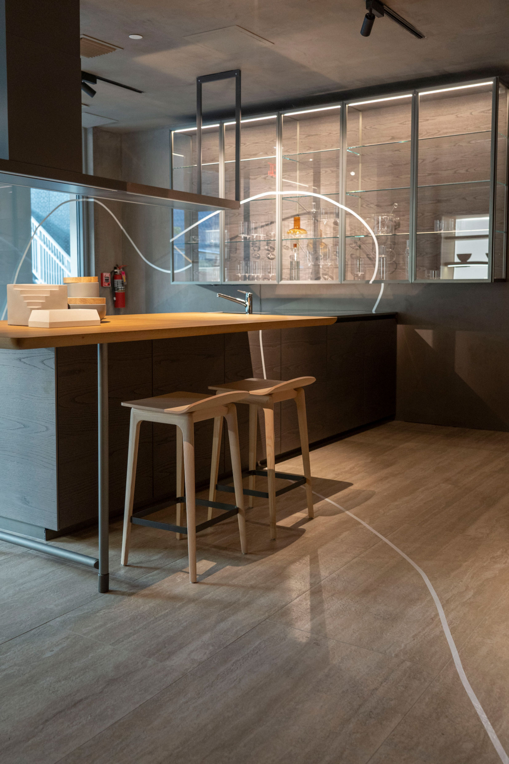 Claudia Vieira will take over the entire Flagship Store on the evening of November 30th, conducting a captivating and meditative performance in which she will draw her signature unending line across the floors, walls, ceiling, and several of Molteni&C’s most iconic designs, including Jasper Morrison’s Tea dining chairs, Vincent Van Duysen’s VVD kitchen and the iconic Grid shelving system. Each of the pieces will then minted on-site as an NFT by Alphaa.io.