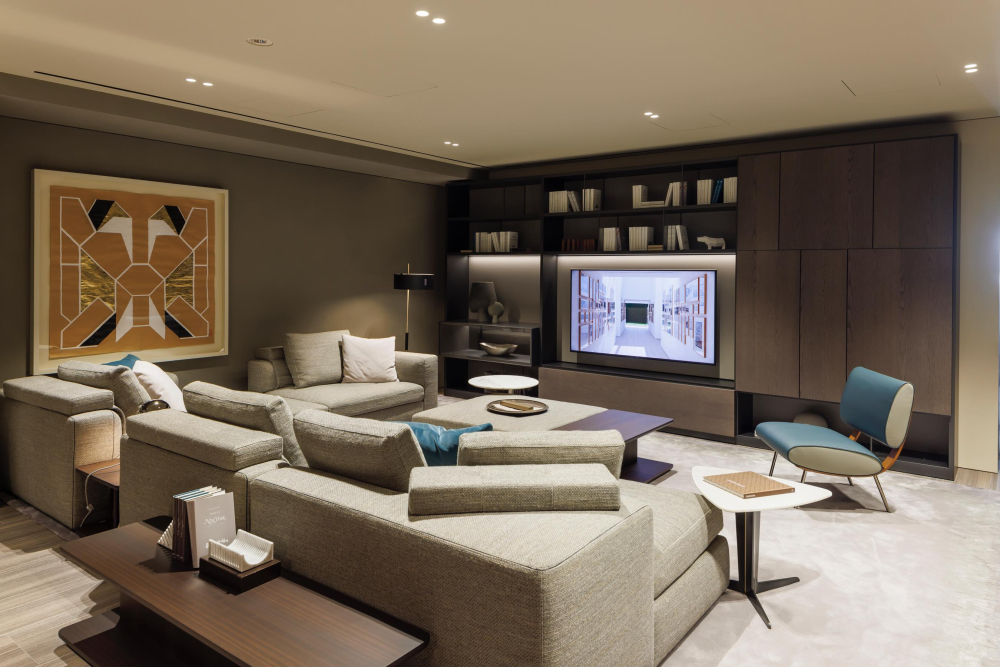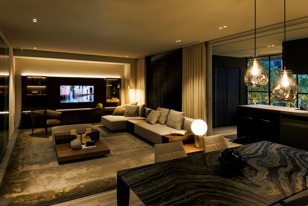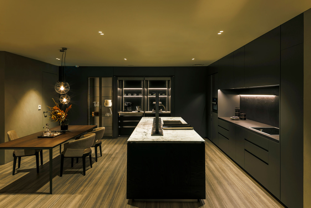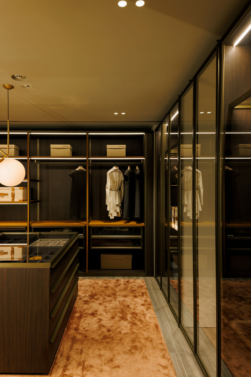 リビング、ダイニング、ベッドルームの他、モルテーニの代名詞とも言えるワードローブシステムで構成されたウォークインクローゼットや、機能美溢れるキッチンも2つのエリアでご覧いただけます。