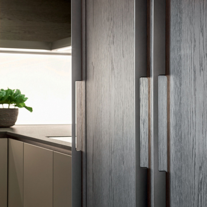 The Molteni&C Dada Engineered Kitchen Collection presents a vast array of handle designs to customize drawers, doors, wall units, etc., to further personalize the heart of the home.