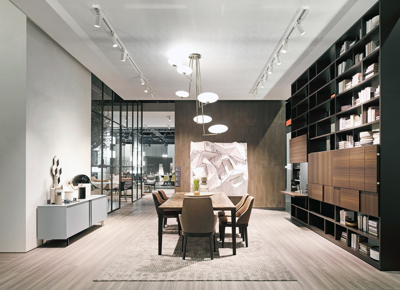 Like his design for the Molteni stand at the 2016 Salone del Mobile. The elegance, sober and discreet, is that of the great stately homes, reminiscent of Villa Necchi Campiglio in Milan, designed by Piero Portaluppi, with its secret gardens and the patio, where light flows softly.