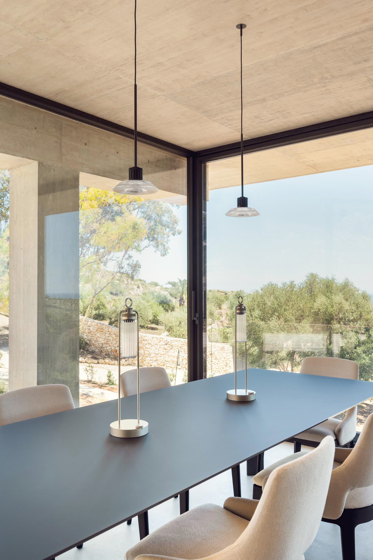 In ogni angolo di questo hotel a conduzione familiare, le poltrone firmate Gio Ponti — D.153.1, D.151.4 e D.156.3 — insieme ai tavolini D.552.2, si fondono con pezzi su misura di artigianato locale, dando vita a un armonioso equilibrio tra fascino rétro e quiete mediterranea. Ogni ambiente si apre all’orizzonte; ogni spazio invita a fermarsi un istante in più.