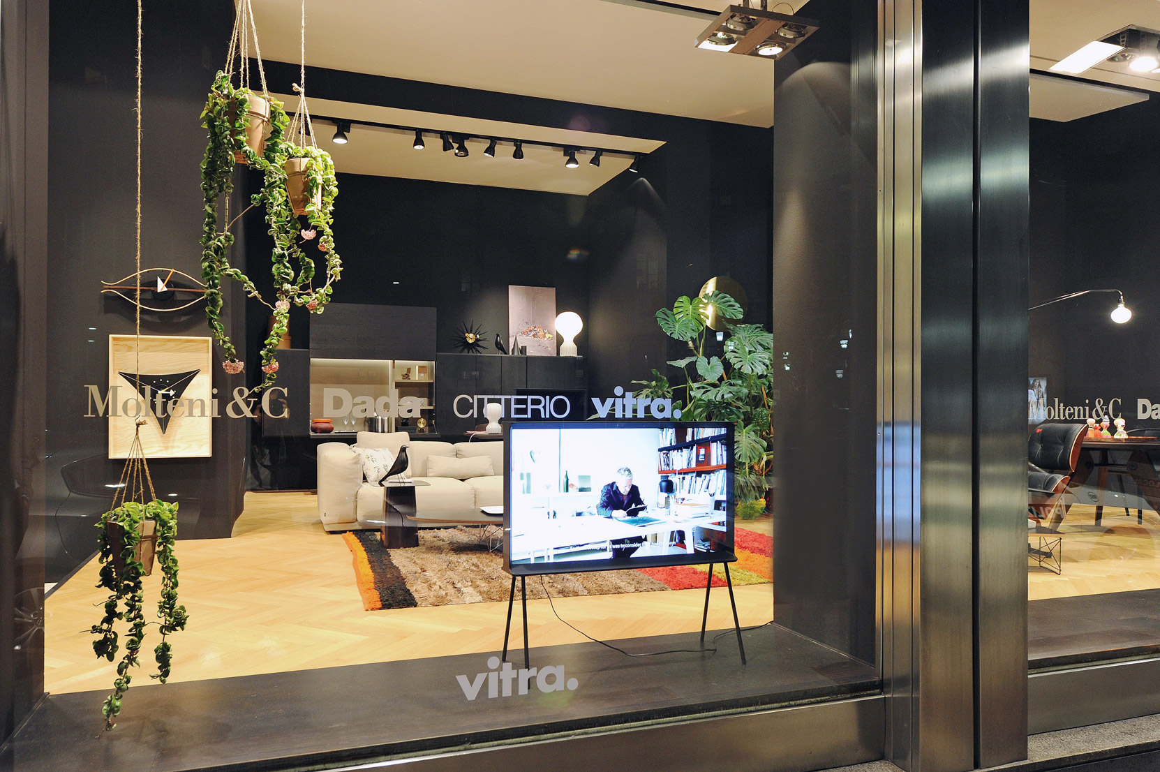 Salone del Mobile 2016 - New skyline for the event promoted every year by Molteni&C and Salvatore Ferragamo: alongside the historic window displays of Boutique Donna in Via Montenapoleone, this year Boutique Uomo too is showcasing the "Materia" installation, inspired by Molteni&C’s new textile collection. Materia is the result of careful recovery and research work into the archives of the greatest Italian textile manufacturers, three new textile designs, inspired by the world of Nature: Foliage and Roots plus a more sophisticated interpretation of Viennese cane seating in Paglia.