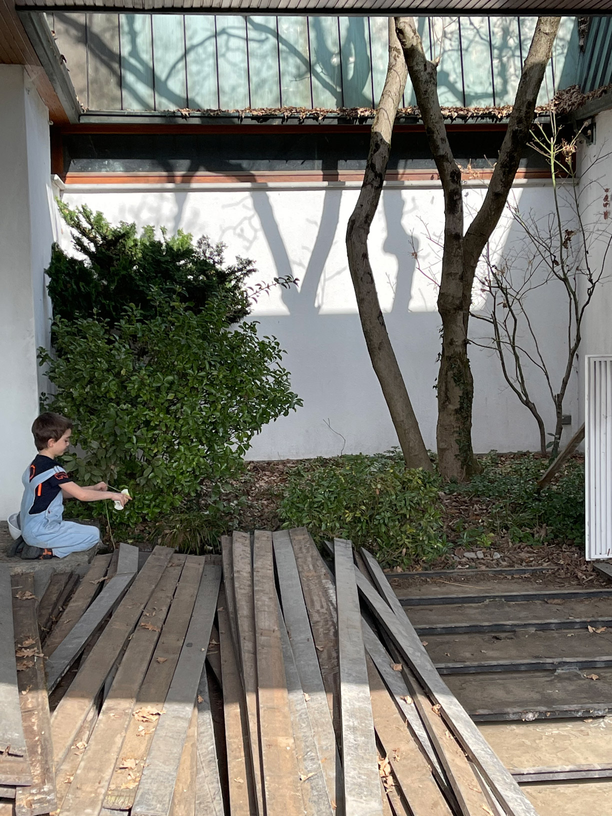 A house that they designed themselves, inside and out, in every single detail, re-designed starting from a pre-existing home – that of a poet with a passion for Japan, with vintage charm, with modernist influences, lots of light, wood and bamboo, a nice wood that surrounds it and brings Nature right into the living space. Far but near to the Lombard city where they lived together, after years wandering from one world city to another.