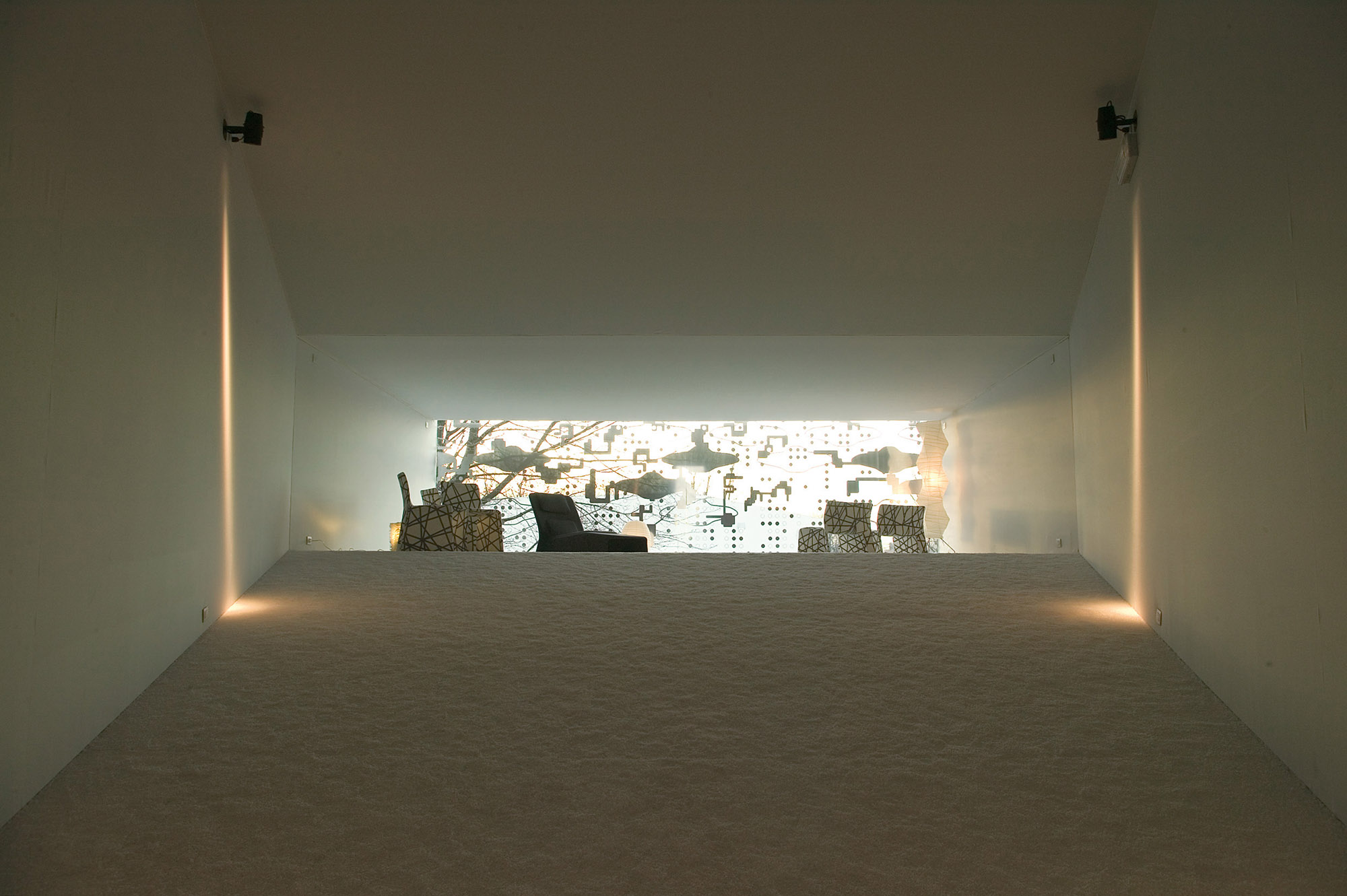 Urquiola has taken the leg and made it much bigger with a play on scale reminiscent of certain Oldenburg-style pop experiments. In this case however, she isn’t trying to provoke reflection on objects through a superobject: the change in scale here means change in meaning and function. The super-leg leans to one side, is hollow and can be entered. Created by Molteni, it was the entrance to the exhibition of Urquiola’s work in Verona, part of the 2006 Abitare il tempo show.