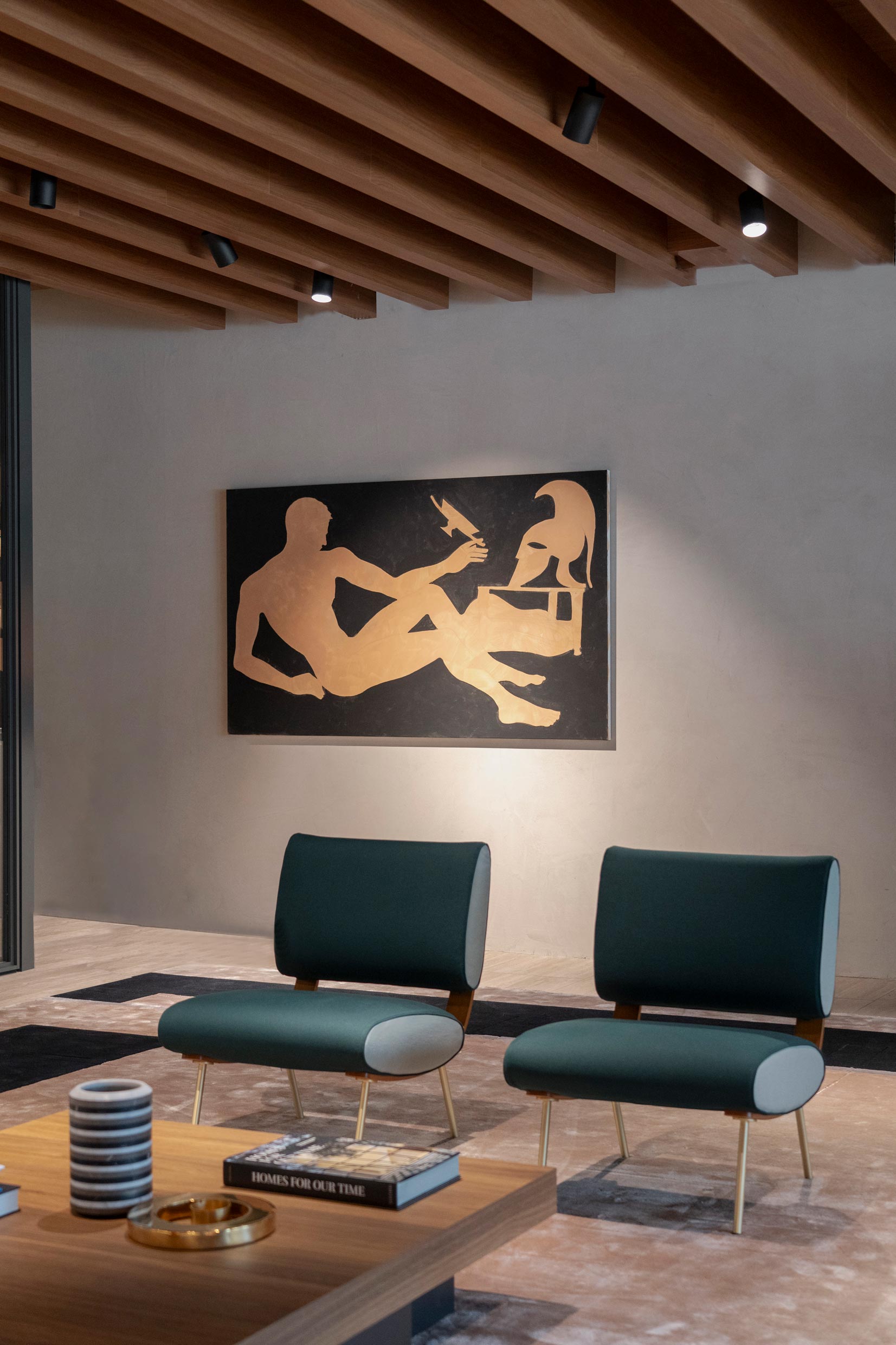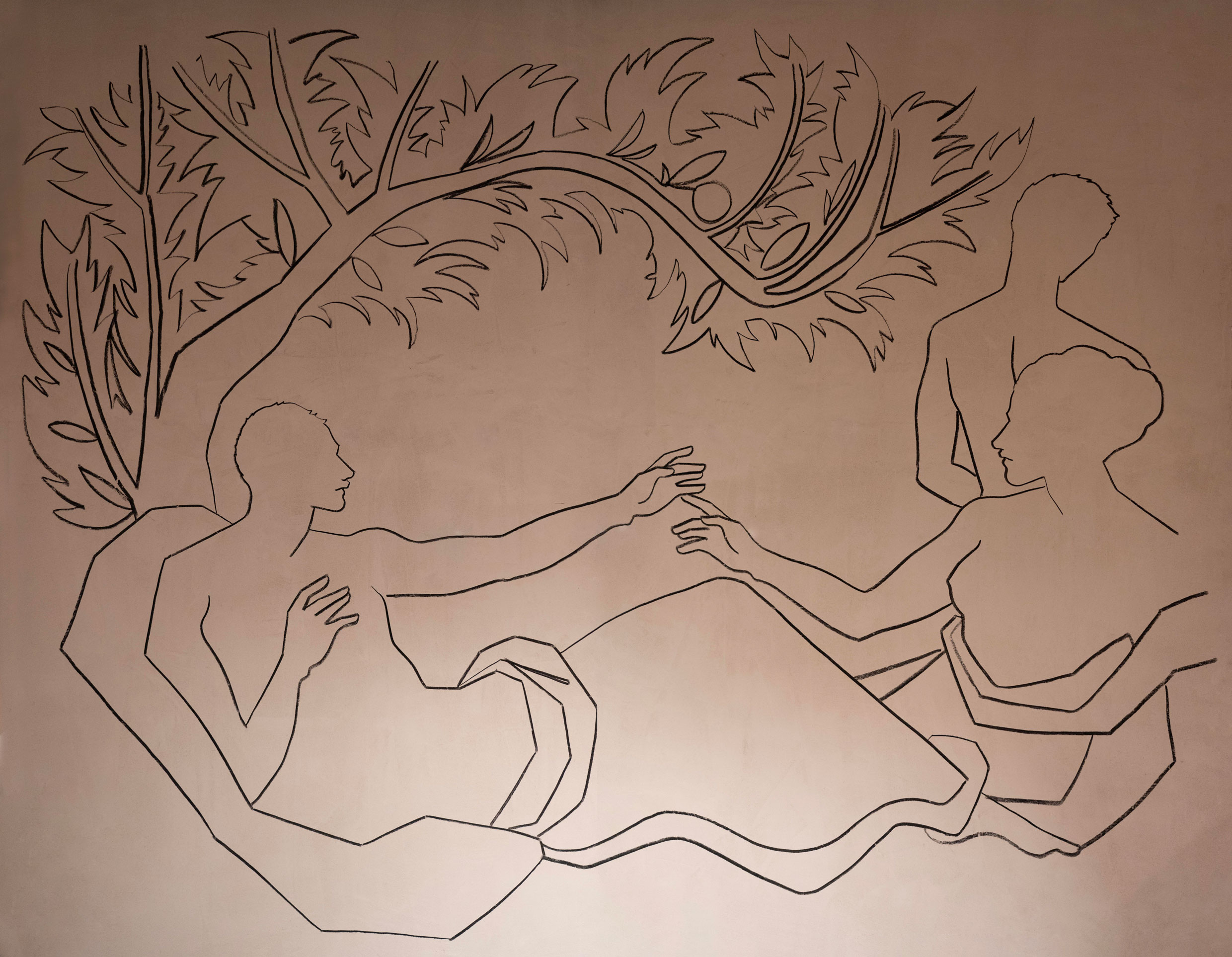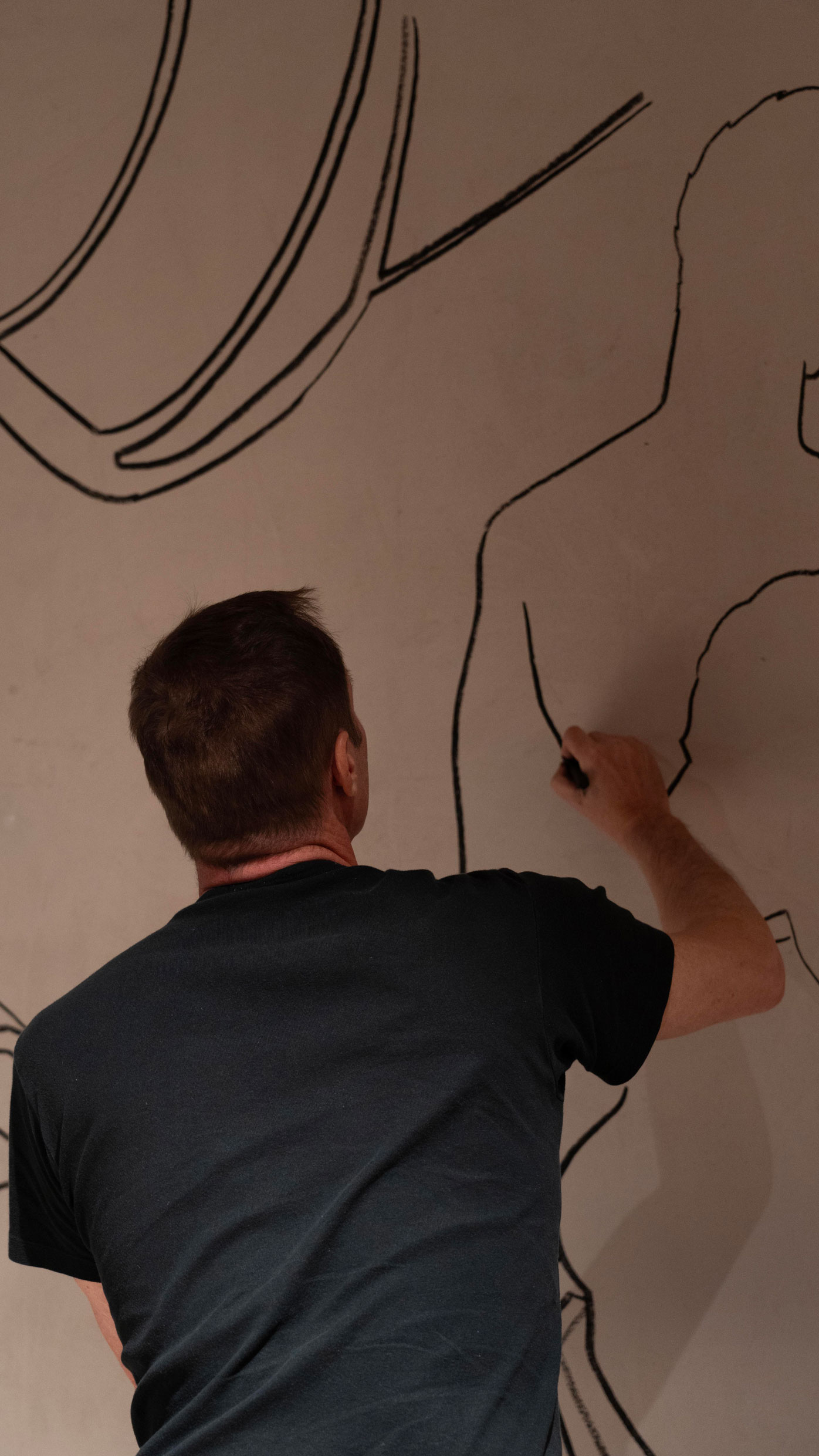 El director creativo Vincent Van Duysen reconoció la sinergia entre la obra de Ruspoli y las inspiraciones históricas de la Domus Romana de la 2023 Collection. Esto dio lugar a una colaboración para nuestra instalación en el Salone del Mobile: un fresco al carbón que adornaba las paredes de la sede de Molteni&C en Giussano (Italia), mezclando figuras clásicas con elementos naturales y acuáticos.