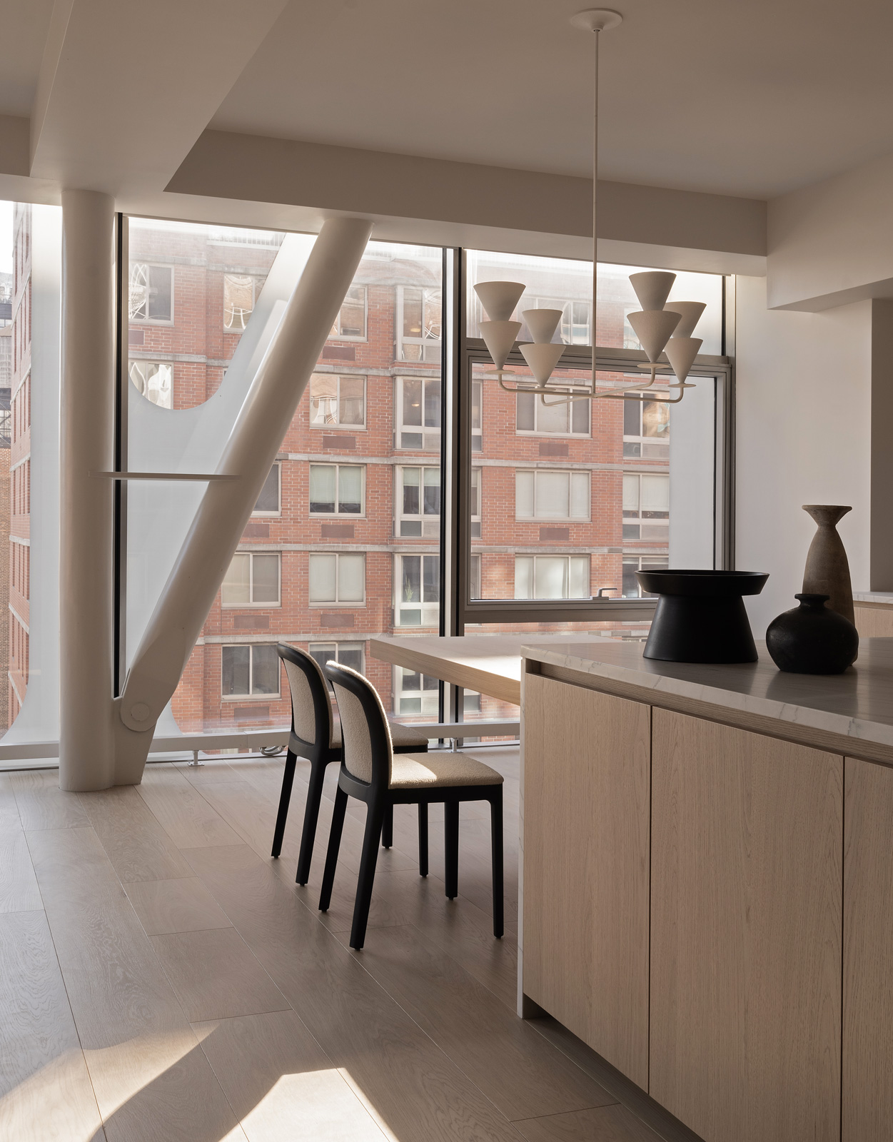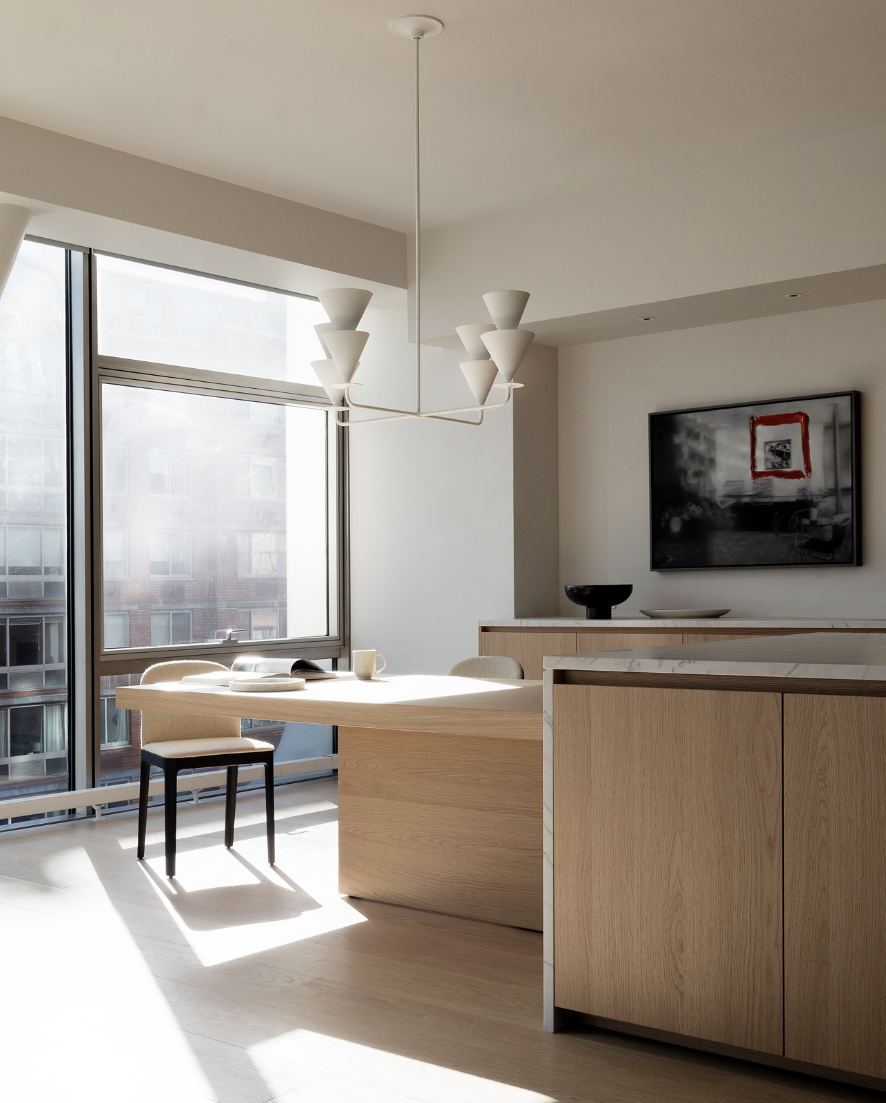 Seamless cabinetry with recessed openings create an atmosphere marked by high design that also optimizes the urban living space. Full of flawless detailing, the design includes special joinery to mask the HVAC.