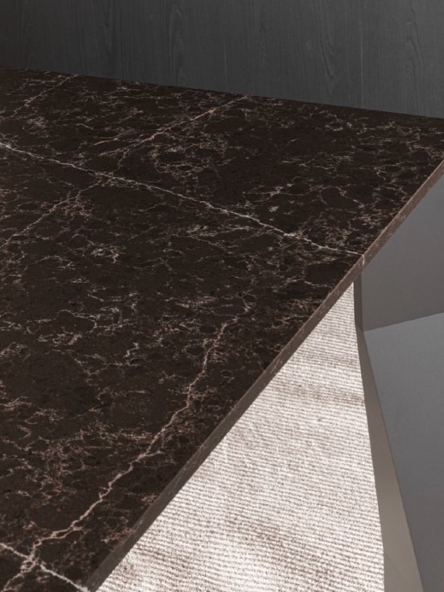 パトリシア・ウルキオラが持つ豊かなイメージをアルミで出来うる最高技術を取り入れて形にしたテーブル。ダイアモンドのような輝きを放つ脚部は、1mmのアルミ板で形成、強度と意匠を兼ね備えている。