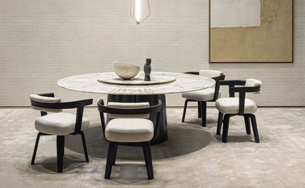 円錐形のベース中央のスリットが軽やかながら安定性と堅牢性を持ち合わせたテーブル。現代の生活スタイルに合わせ幅広いサイズと仕上げを用意。