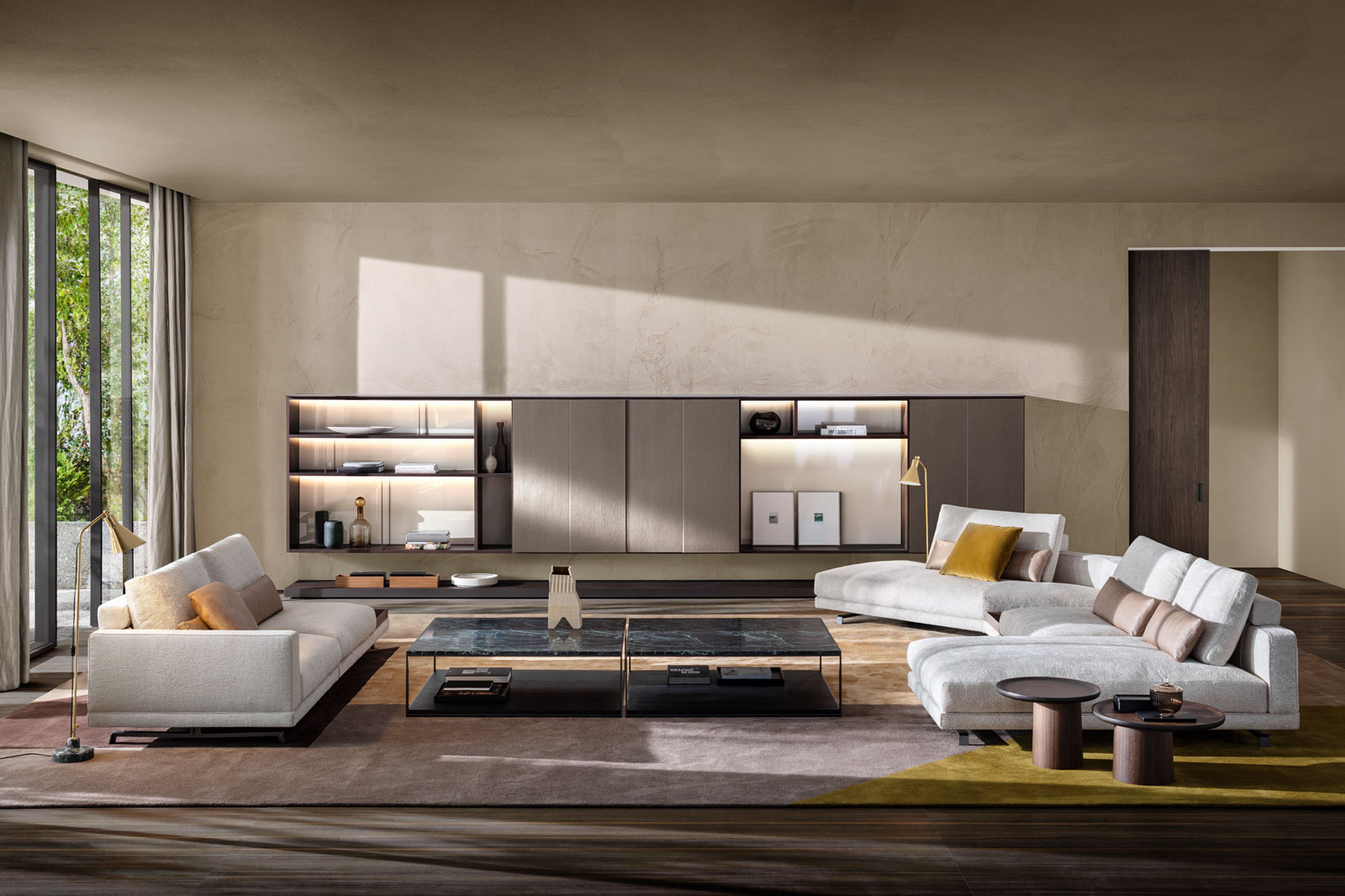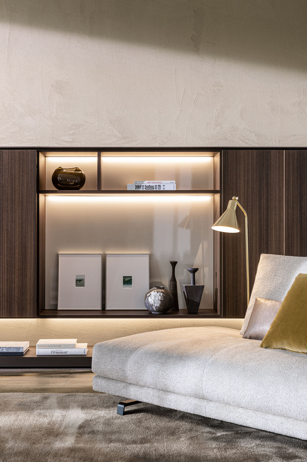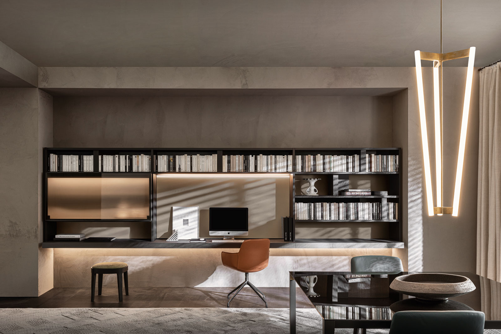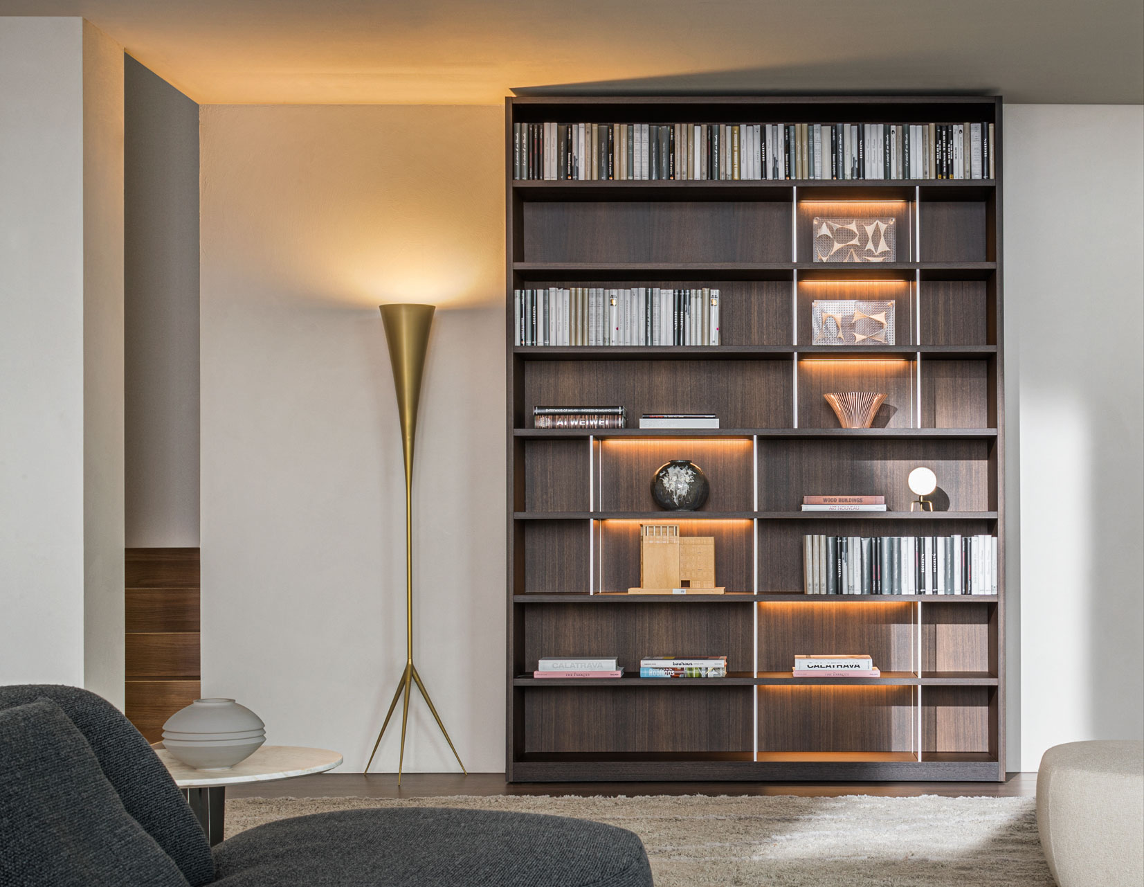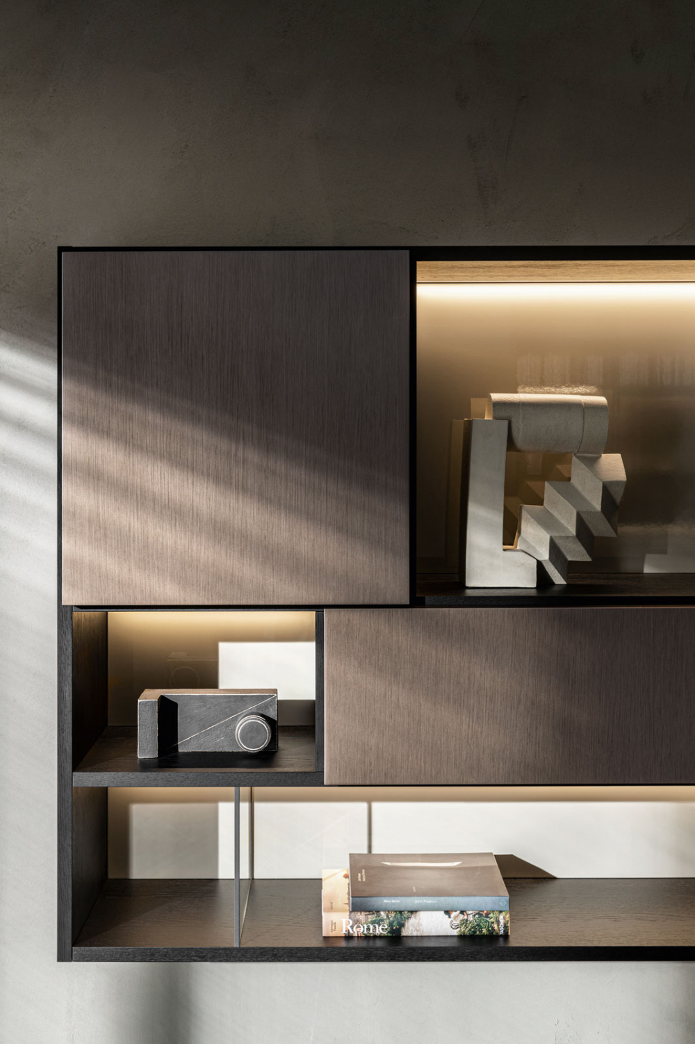 Bookcases, containers, cupboards, display cabinets, TV cabinets, smart working stations, multifunctional walls.