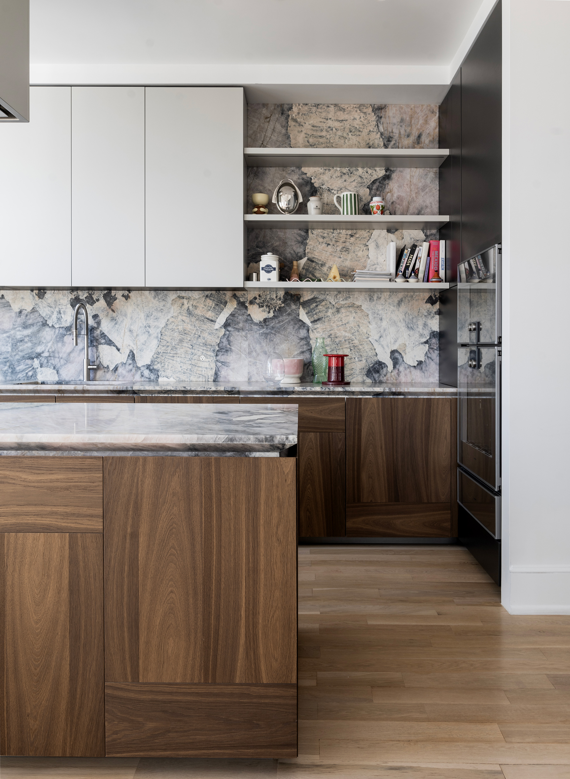 The project centers around two key interior focal points: the meticulously designed closet and the sculptural Intersection kitchen. Together, they articulate a spatial narrative defined by material harmony, artisanal expertise, and contemporary form.