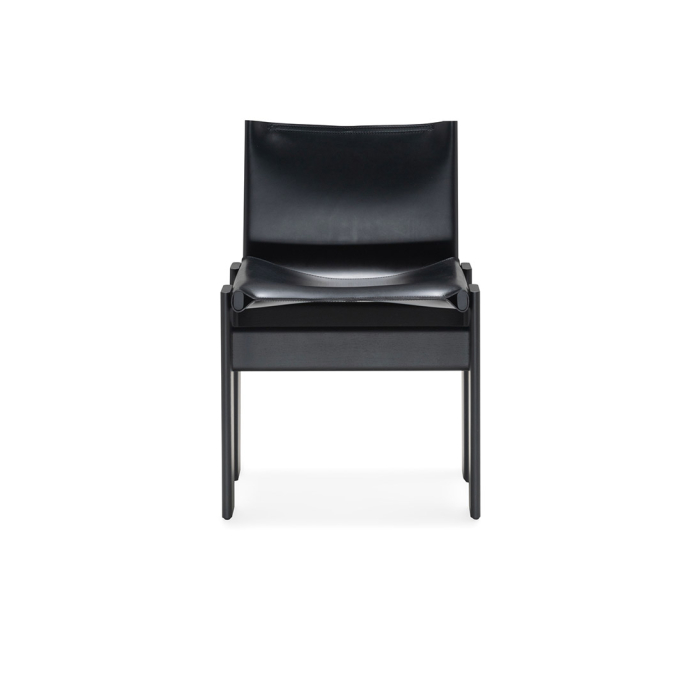 Available both as a versatile chair for the dining area and an armchair for the living room or bedroom, Monk is defined by its pared-down aesthetic that highlights the expressive qualities of leather against solid wood. Eight burnished steel rivets secure the seat to the frame, bringing a subtle decorative accent to this exquisite design.