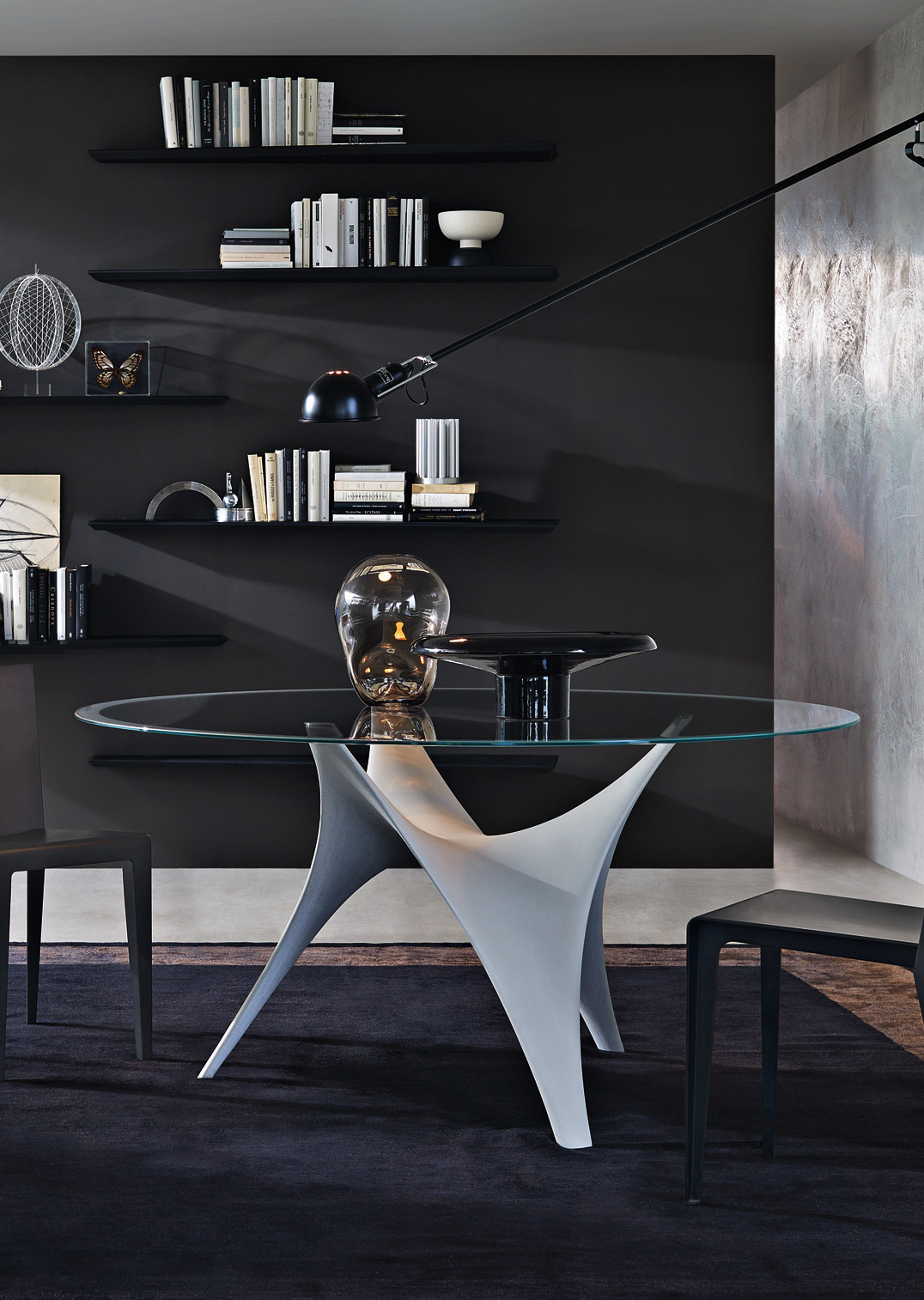 The table Arc embodies the innovative concepts which distinguish it. The base shape is inspired by the technostructures currently used in modern building: a new “light” cement which mixes colour and a special fibrous material obtaining resistant structures with a low specific weight. Printed in a single block and dyed. It allows the manufacture of complex shapes, the Arc table combines the structural characteristics of strength and elasticity with innovative concepts such as complete recyclability and low environmental impact of the production cycle.